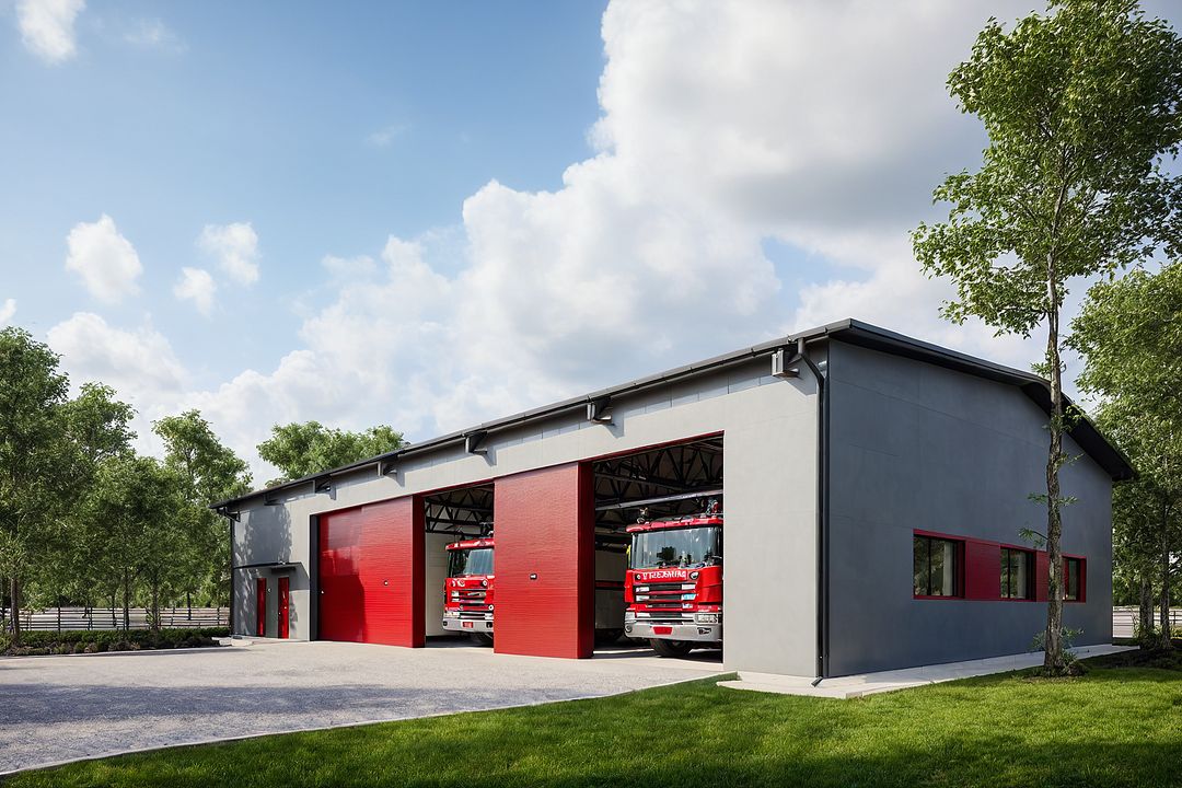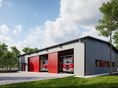 Budynek wykonany w technologii tradycyjnej. Ściany warstwowe grubości 40cm, murowane z bloczków z pustaków ceramicznych grubości 25cm, ocieplone styropianem grubości 15cm. Ściany wewnętrzne z pustaków ceramicznych grubości 25cm i 12cm. Bramy o wymiarach 4,00×4,00m. Więźba dachowa dwuspadowa, stalowa, pokryta płytą warstwową.