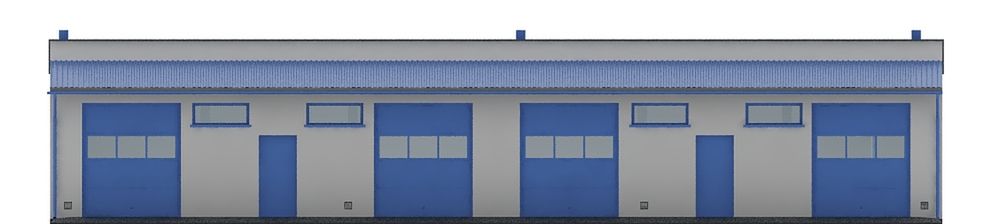 Budynek wykonany w technologii tradycyjnej. Ściany murowane z bloczków z betonu komórkowego grubości 24cm. Bramy o wymiarach 2.60×3.00m. Więźba dachowa jednospadowa, stalowa, pokryta blachą trapezową.