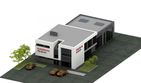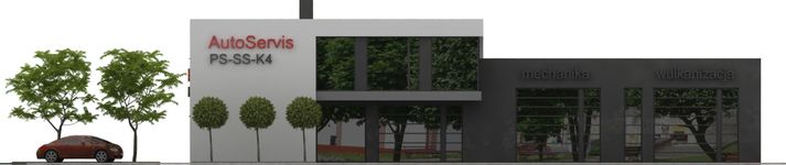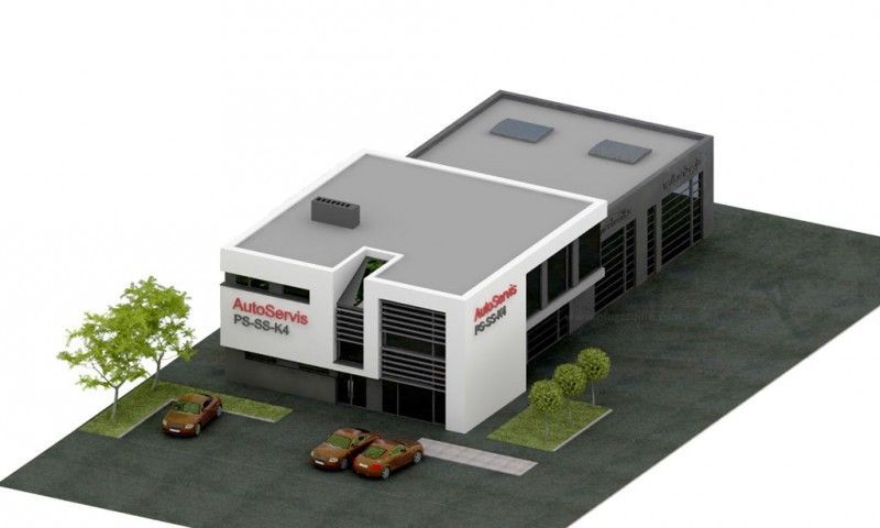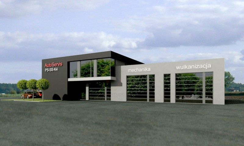 Budynek usługowy lub warsztat samochodowy posadowiony został na ławach fundamentowych. Ściany zewnętrzne dwuwarstwowe 25 cm ściana nośna 25 cm ocieplenie styropianem lub wełną mineralną. Ściany wewnętrzne z płyty gipsowo-kartonowej [na ruszcie]. Strop żelbetowy, stropodach żelbetowy. Pokrycie dachu – EPDM i warstwa balastowa.