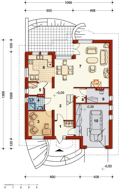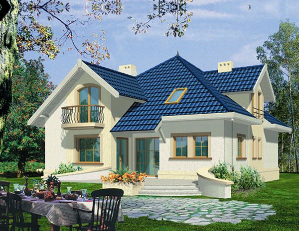 Graficzne opracowanie rzutów poglądowych widocznych na karcie projektu zostało wykonane przez Extradom.pl. Prezentowane przez Extradom.pl wizualizacje wykonane zostały przez autora projektu i należy poczytywać je jedynie za przykład i propozycję wykończenia, wizję architektoniczną autora projektu. Ostateczne wykończenie budynku może nastąpić na wiele sposobów. Szczegółowe rozwiązania zastosowane w oferowanej dokumentacji - w tym również ilość, lokalizacje i wygląd okien, drzwi, kominów - mogą w niewielkim stopniu różnić się od prezentowanej wizualizacji budynku.