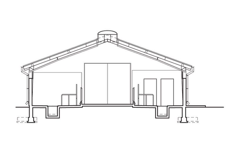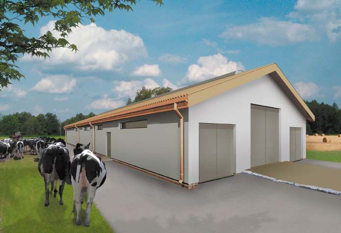 Ściany zewnętrzne: dwuwarstwowe gr. 24 cm pustak gr. 19 cm + styropian 5 cm. Strop: nad pomieszczeniami nr 6-10 gęstożebrowy typu TERIVA I. Dach:dwuspadowy o stalowej konstrukcji ramowej - pokrycie - stalowa blacha trapezowa powlekana o grubości 1 mm. - kąt nachylenia 20° (36%).
