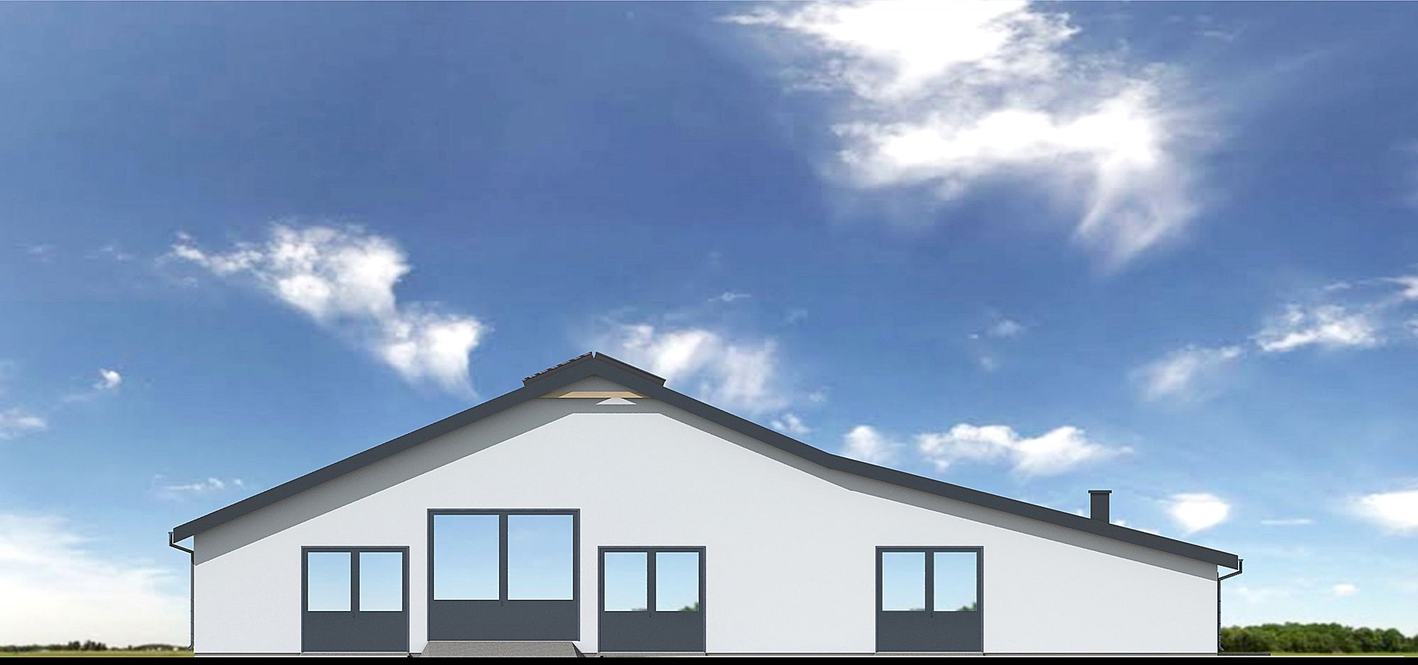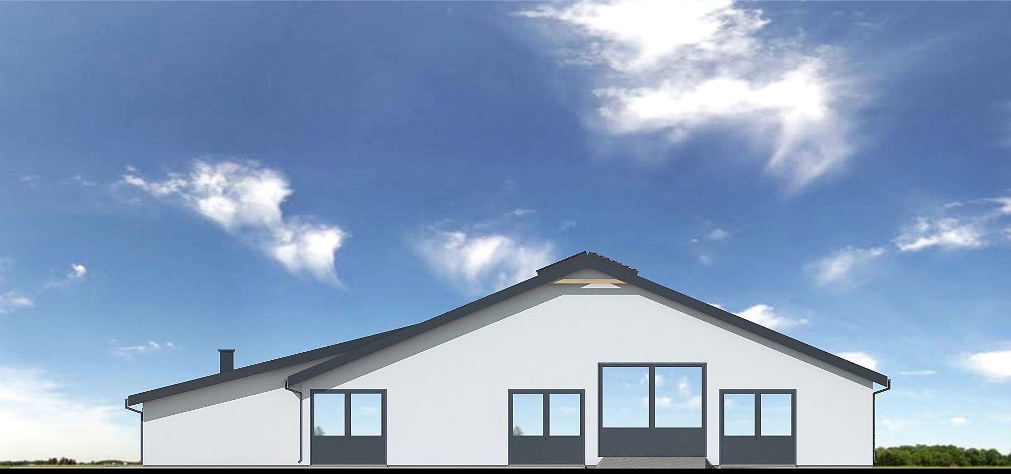 Graficzne opracowanie rzutów poglądowych widocznych na karcie projektu zostało wykonane przez Extradom.pl. Prezentowane przez Extradom.pl wizualizacje wykonane zostały przez autora projektu i należy poczytywać je jedynie za przykład i propozycję wykończenia, wizję architektoniczną autora projektu. Ostateczne wykończenie budynku może nastąpić na wiele sposobów. Szczegółowe rozwiązania zastosowane w oferowanej dokumentacji - w tym również ilość, lokalizacje i wygląd okien, drzwi, kominów - mogą w niewielkim stopniu różnić się od prezentowanej wizualizacji budynku.