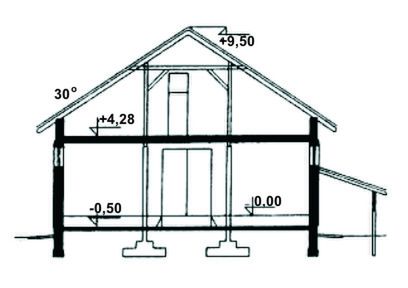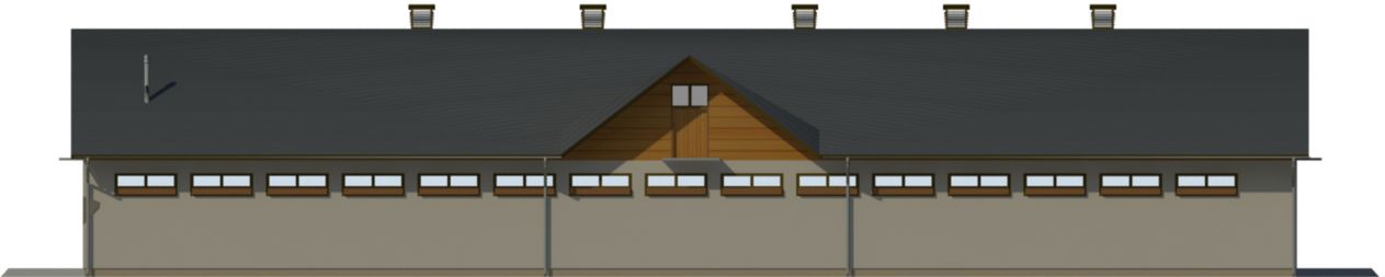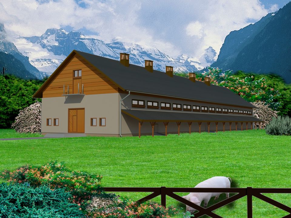 Ściany zewnętrzne: Budynek o konstrukcji murowanej. Ściany warstwowe. Wariantowe rozwiązanie materiałowe ścian, słupów.. Strop: wariantowe rozwiazanie stropu. Dach: dwuspadowy o nachyleniu 30 stopni. Poziom kalenicy: 10,00 m od terenu. Dodatkowe informacje: Wydzielona paszarnia i dyżurka, hala dla 200 matek, długość budynku odpowiednio 48,50 - 36,60 - 24,60 m. Obsada 47,7 DJP