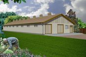 Graficzne opracowanie rzutów poglądowych widocznych na karcie projektu zostało wykonane przez Extradom.pl. Prezentowane przez Extradom.pl wizualizacje wykonane zostały przez autora projektu i należy poczytywać je jedynie za przykład i propozycję wykończenia, wizję architektoniczną autora projektu. Ostateczne wykończenie budynku może nastąpić na wiele sposobów. Szczegółowe rozwiązania zastosowane w oferowanej dokumentacji - w tym również ilość, lokalizacje i wygląd okien, drzwi, kominów - mogą w niewielkim stopniu różnić się od prezentowanej wizualizacji budynku.