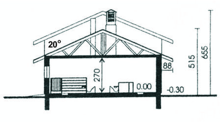 Ściany zewnętrzne: Konstrukcja tradycyjna, ściany murowane w części inwentarskiej warstwowe. Strop: strop drewniany ocieplony. Dach: dwuspadowy z dźwigarów kratowych, drewnianych. Nachylenie 20 stopni. Poziom kalenicy: 6,65 od terenu. Dodatkowe informacje: Stanowiska ściołowe, wiązane dla 8 krów i 5 jałówek, kojce dla 4 cieląt. Obsada 12,2 DJP