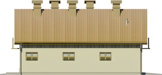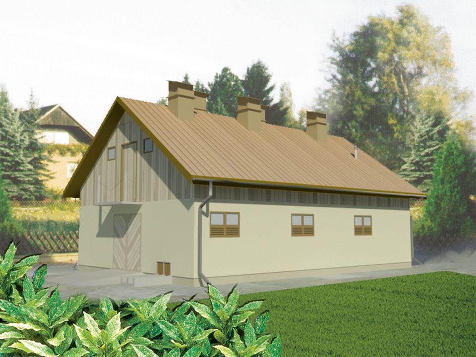 Graficzne opracowanie rzutów poglądowych widocznych na karcie projektu zostało wykonane przez Extradom.pl. Prezentowane przez Extradom.pl wizualizacje wykonane zostały przez autora projektu i należy poczytywać je jedynie za przykład i propozycję wykończenia, wizję architektoniczną autora projektu. Ostateczne wykończenie budynku może nastąpić na wiele sposobów. Szczegółowe rozwiązania zastosowane w oferowanej dokumentacji - w tym również ilość, lokalizacje i wygląd okien, drzwi, kominów - mogą w niewielkim stopniu różnić się od prezentowanej wizualizacji budynku.