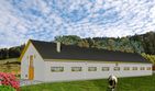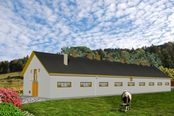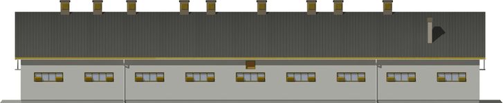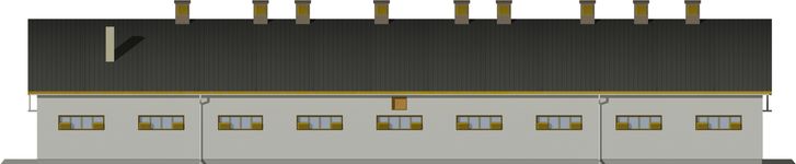 Ściany zewnętrzne: Konstrukcja tradycyjna, murowane ściany warstwowe z dwoma rzędami słupów. Moduł podłużny 4,80 m rozstaw osiowy poprzeczny 3,60 - 4,20 - 3,60 m. Wariantowe rozwiązanie materiałowe ścian, stropów i więźby dachowej.. Dach: Dwuspadowy, o kacie nachylenia 36 stopni. Poziom kalenicy: 8,79 od terenu. Dodatkowe informacje: Segmentowa budowa, umozliwia realizację obór dłuższych o 3 segmenty lub mniejszych maksymalnie o 4 segmenty. Obsada 55,40 DJP
