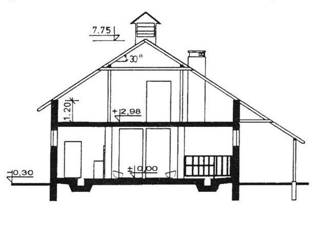 Ściany zewnętrzne: Konstrukcja tradycyjna - murowane ściany warstwowe o grubości 40 cm z pustaków. Strop: Strop - płyta żelbetowa lub płyta Kleina na belkach stalowych.. Dach: Dwuspadowy o kacie nachylenia 30 stopni. Więźba dachowa drewniana płatwiowo-kleszczowa. Pokrycie dachu: dachówka zakładowa lub blacha falista. Przedłużona połać dachu tworzy wiatę.. Poziom kalenicy: 8,05 m od terenu. Dodatkowe informacje: Obsada 18,5 DJP. Segmentowa budowa umożliwia realizację obór dłuższych o 5 segmentów lub mniejszych maksymalnie o 1 segment.