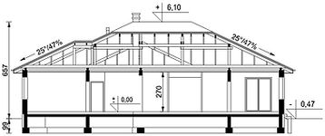 Tradycyjna – ściany murowane z bloczków z betonu komórkowego gr=24cm, ocieplone styropianem. Dach wielospadkowy o konstrukcji więźby drewnianej, kryty dachówką cementową lub blachą dachówkową. Fundamenty żelbetowe wylewane na budowie zgodnie z rysunkami konstrukcji. Ściany fundamentowe z bloczków betonowych gr=24cm. Stolarka okienna zgodnie z zestawieniem. Ściany tynkowane z zewnątrz tynkiem systemowym- cienkowarstwowym a od wewnątrz tynkiem cementowo - wapiennym.