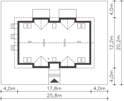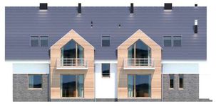 Graficzne opracowanie rzutów poglądowych widocznych na karcie projektu zostało wykonane przez Extradom.pl. Prezentowane przez Extradom.pl wizualizacje wykonane zostały przez autora projektu i należy poczytywać je jedynie za przykład i propozycję wykończenia, wizję architektoniczną autora projektu. Ostateczne wykończenie budynku może nastąpić na wiele sposobów. Szczegółowe rozwiązania zastosowane w oferowanej dokumentacji - w tym również ilość, lokalizacje i wygląd okien, drzwi, kominów - mogą w niewielkim stopniu różnić się od prezentowanej wizualizacji budynku.