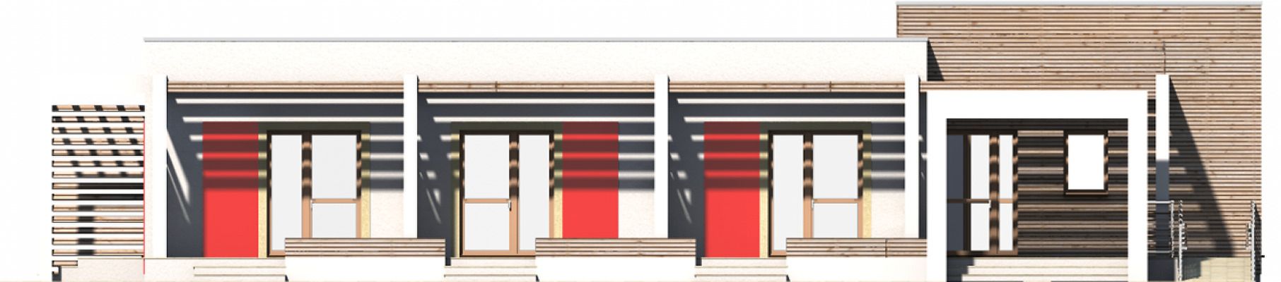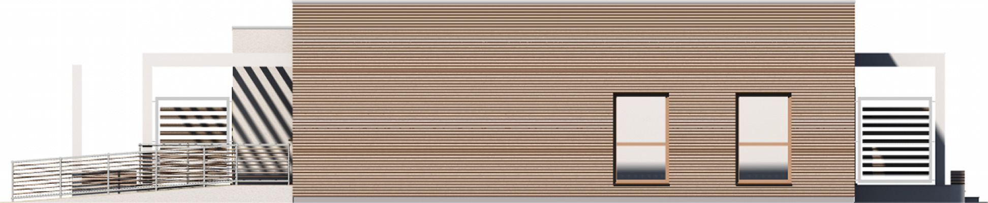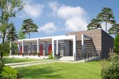 Graficzne opracowanie rzutów poglądowych widocznych na karcie projektu zostało wykonane przez Extradom.pl. Prezentowane przez Extradom.pl wizualizacje wykonane zostały przez autora projektu i należy poczytywać je jedynie za przykład i propozycję wykończenia, wizję architektoniczną autora projektu. Ostateczne wykończenie budynku może nastąpić na wiele sposobów. Szczegółowe rozwiązania zastosowane w oferowanej dokumentacji - w tym również ilość, lokalizacje i wygląd okien, drzwi, kominów - mogą w niewielkim stopniu różnić się od prezentowanej wizualizacji budynku.