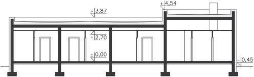 Fundamenty - rozwiązanie o podwyższonej izolacji termicznej. Ściany zewnętrzne - Bloczek silikatowy 24 cm + styropian 15 cm. Strop - gęstożebrowy. Dach - stropodach gęstożebrowy. Ogrzewanie - c.o. grzejnikowe + c.w.u. - kocioł gazowy. Wentylacja - rekuperacja.