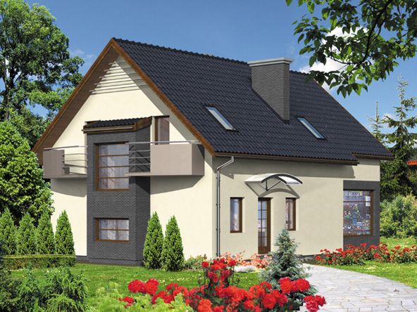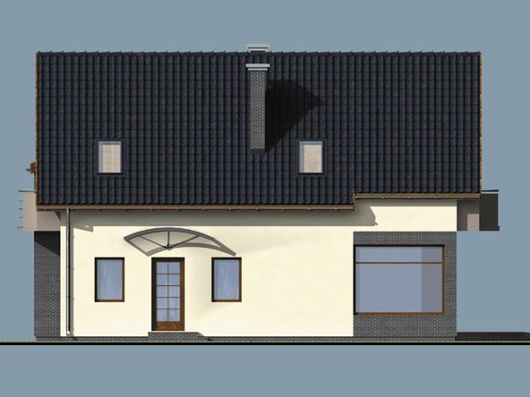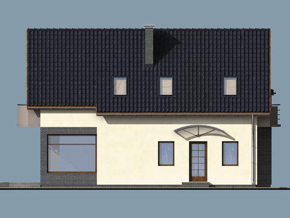 Graficzne opracowanie rzutów poglądowych widocznych na karcie projektu zostało wykonane przez Extradom.pl. Prezentowane przez Extradom.pl wizualizacje wykonane zostały przez autora projektu i należy poczytywać je jedynie za przykład i propozycję wykończenia, wizję architektoniczną autora projektu. Ostateczne wykończenie budynku może nastąpić na wiele sposobów. Szczegółowe rozwiązania zastosowane w oferowanej dokumentacji - w tym również ilość, lokalizacje i wygląd okien, drzwi, kominów - mogą w niewielkim stopniu różnić się od prezentowanej wizualizacji budynku.