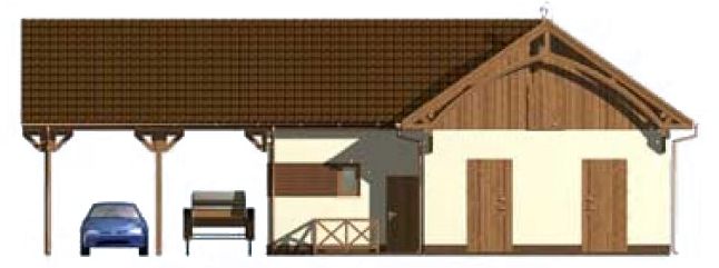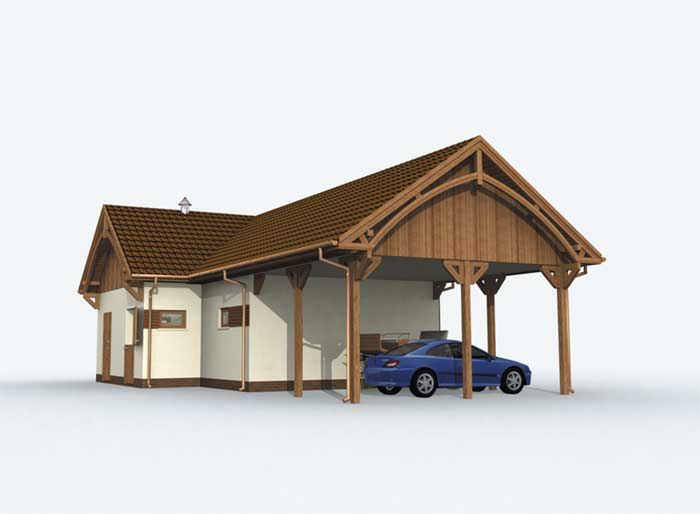 Graficzne opracowanie rzutów poglądowych widocznych na karcie projektu zostało wykonane przez Extradom.pl. Prezentowane przez Extradom.pl wizualizacje wykonane zostały przez autora projektu i należy poczytywać je jedynie za przykład i propozycję wykończenia, wizję architektoniczną autora projektu. Ostateczne wykończenie budynku może nastąpić na wiele sposobów. Szczegółowe rozwiązania zastosowane w oferowanej dokumentacji - w tym również ilość, lokalizacje i wygląd okien, drzwi, kominów - mogą w niewielkim stopniu różnić się od prezentowanej wizualizacji budynku.