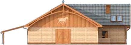 Technologia drewniana - bale : - ściany zewnętrzne w części stajennej wykonane z połowy bala fi 25cm - ściany zewnętrzne w części mieszkalnej wykonane z bala fi 25cm - ściany wewnętrzne działowe gr. 12,5cm z połowy bala fi 25cm - strop nad częścią mieszkalną z belek drewnianych - dach oparty na więźbie o konstrukcji drewnianej, płatwiowo-kleszczowej - instalacja grzewcza w części mieszkalnej - kominek z płaszczem wodnym