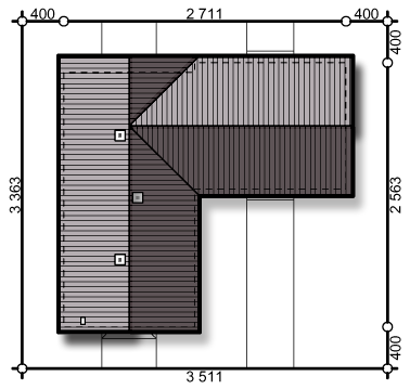 Graficzne opracowanie rzutów poglądowych widocznych na karcie projektu zostało wykonane przez Extradom.pl. Prezentowane przez Extradom.pl wizualizacje wykonane zostały przez autora projektu i należy poczytywać je jedynie za przykład i propozycję wykończenia, wizję architektoniczną autora projektu. Ostateczne wykończenie budynku może nastąpić na wiele sposobów. Szczegółowe rozwiązania zastosowane w oferowanej dokumentacji - w tym również ilość, lokalizacje i wygląd okien, drzwi, kominów - mogą w niewielkim stopniu różnić się od prezentowanej wizualizacji budynku.
