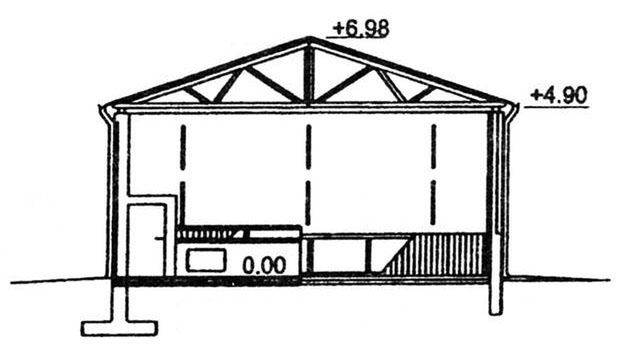 Ściany zewnętrzne: Budynek o konstrukcji szkieletowej, ściany z cegły pełnej, częściowo podpiwniczony.. Strop: nad piwnicą żelbetowy.. Dach: Dach - wiązar kratowy drewniany, krycie 2 x papa na deskowaniu lub płyty ONDULINE. nachylenie 20 stopni. Poziom kalenicy: 6,98 m od terenu. Dodatkowe informacje: zapotrzebowanie energii elektrycznej 9,7 kW