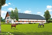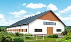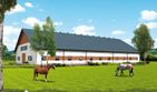 Technologia tradycyjna : - wymiary wrot drewnianych 4,0m x 3,5m - ściany zewnętrzne murowane grubości 30 cm. - wszystkie ściany wykonane z pustaków ceramicznych "POROTHERM". - dach dwuspadowy o kącie 30° - dach pokryty dachówką ceramiczną. - wieżba o konstrukci drewnianej z wiązarów kratowych - pow. dachu : 1203m2
