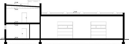 Budynek wykonany w technologii tradycyjnej. Ściany warstwowe grubości 36cm, murowane z bloczków z betonu komórkowego grubości 24cm, ocieplone styropianem grubości 12cm. Ściany wewnętrzne z bloczków z betonu komórkowego grubości 24cm i 12cm. Bramy o wymiarach 3,25×3,50m. Komin z cegły ceramicznej pełnej. Strop gęstożebrowy „TERIVA 4,0”. Więźba dachowa dwuspadowa, stalowa, pokryta płytą warstwową.