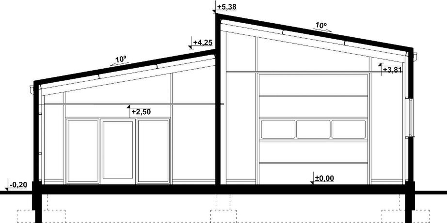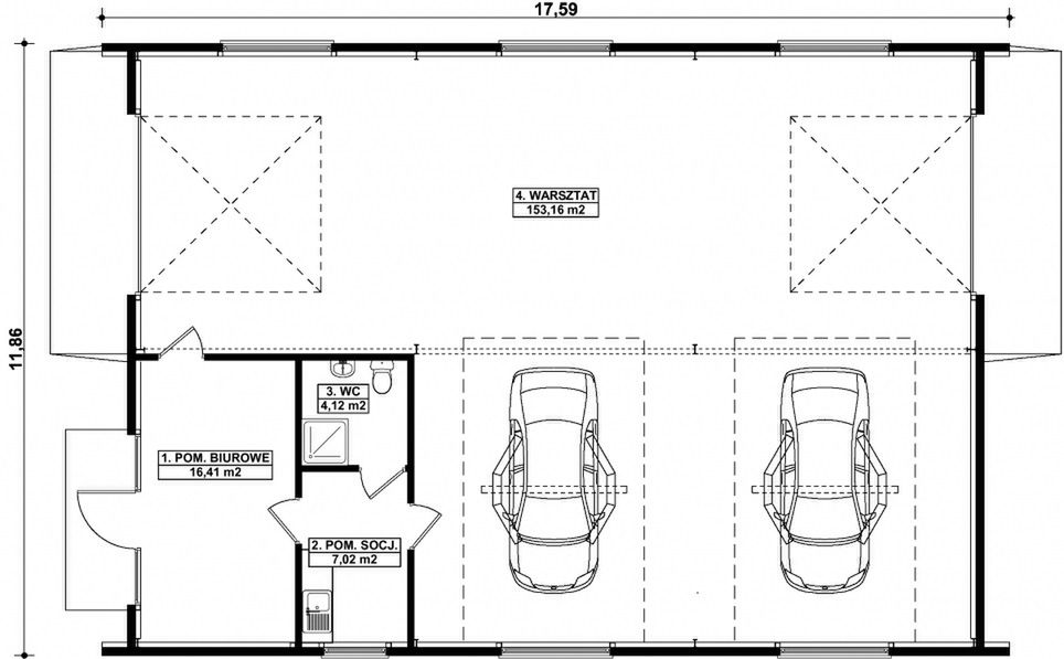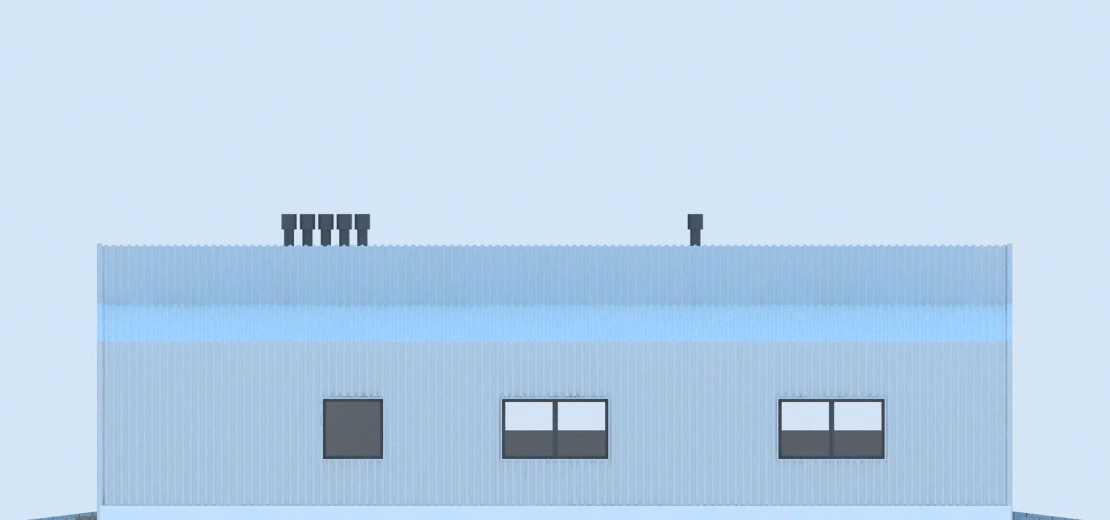 Budynek konstrukcji stalowej. Ściany z płyty warstwowej. Bramy o wymiarach 3,50×3,50m. Więźba dachowa dwuspadowa, stalowa, pokryta płytą warstwową.