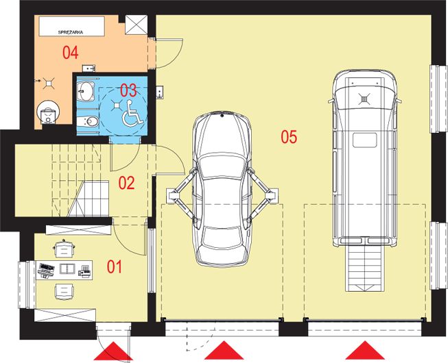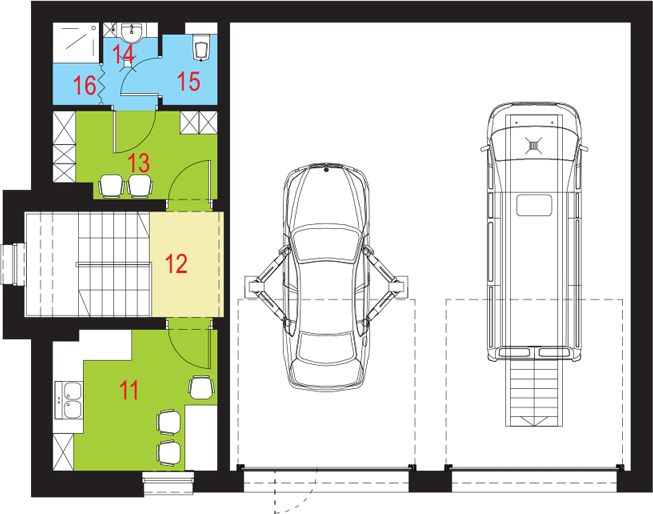Graficzne opracowanie rzutów poglądowych widocznych na karcie projektu zostało wykonane przez Extradom.pl. Prezentowane przez Extradom.pl wizualizacje wykonane zostały przez autora projektu i należy poczytywać je jedynie za przykład i propozycję wykończenia, wizję architektoniczną autora projektu. Ostateczne wykończenie budynku może nastąpić na wiele sposobów. Szczegółowe rozwiązania zastosowane w oferowanej dokumentacji - w tym również ilość, lokalizacje i wygląd okien, drzwi, kominów - mogą w niewielkim stopniu różnić się od prezentowanej wizualizacji budynku.