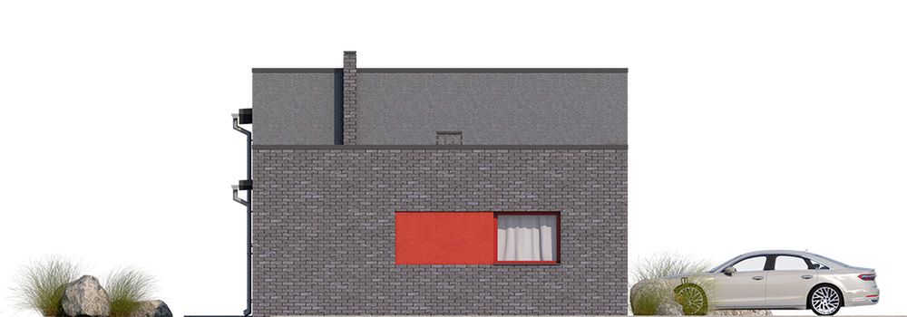 Graficzne opracowanie rzutów poglądowych widocznych na karcie projektu zostało wykonane przez Extradom.pl. Prezentowane przez Extradom.pl wizualizacje wykonane zostały przez autora projektu i należy poczytywać je jedynie za przykład i propozycję wykończenia, wizję architektoniczną autora projektu. Ostateczne wykończenie budynku może nastąpić na wiele sposobów. Szczegółowe rozwiązania zastosowane w oferowanej dokumentacji - w tym również ilość, lokalizacje i wygląd okien, drzwi, kominów - mogą w niewielkim stopniu różnić się od prezentowanej wizualizacji budynku.