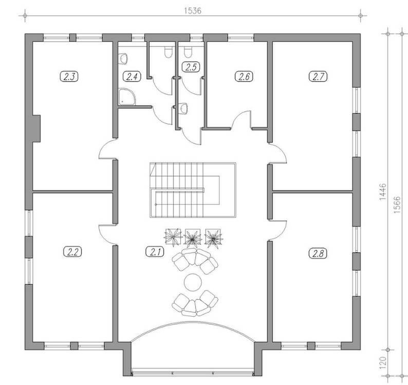 Graficzne opracowanie rzutów poglądowych widocznych na karcie projektu zostało wykonane przez Extradom.pl. Prezentowane przez Extradom.pl wizualizacje wykonane zostały przez autora projektu i należy poczytywać je jedynie za przykład i propozycję wykończenia, wizję architektoniczną autora projektu. Ostateczne wykończenie budynku może nastąpić na wiele sposobów. Szczegółowe rozwiązania zastosowane w oferowanej dokumentacji - w tym również ilość, lokalizacje i wygląd okien, drzwi, kominów - mogą w niewielkim stopniu różnić się od prezentowanej wizualizacji budynku.