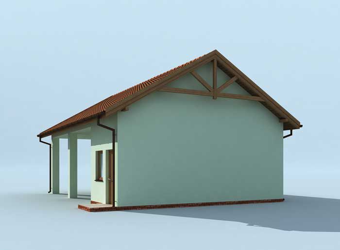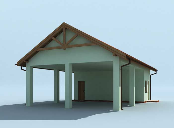 Technologia tradycyjna :- powierzchnia użytkowa budynku (z wiatą) -82,30m2 - powierzchnia zabudowy (bez wiaty) -25,36m2 - powierzchnia wiaty -62,24m2 - kubatura części przekrytej i zmkniętej we wszystkich ston -130,90m3 - kubatura części przekrytej i nie zamkniętej ze wszystkich ston -321,25m3 - kubatura razem -452,15m3 - ściany zewnętrzne nośne murowane grubości 25cm - wysokość budynku 6,32m - dach dwuspadowy 30° - więźba dachowa drewniana - pokrycie dachu dachówka ceramiczna