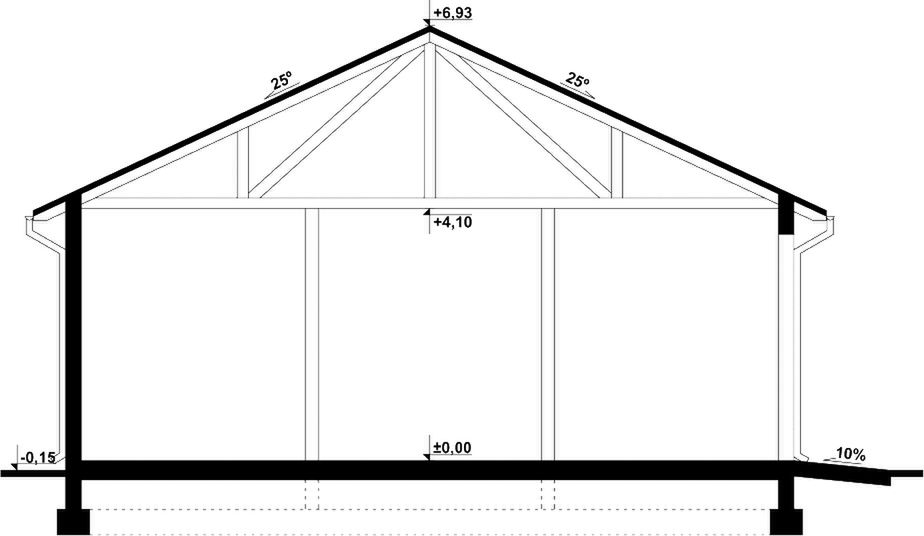 Budynek wykonany w technologii tradycyjnej. Ściany murowane z bloczków z betonu komórkowego grubości 24cm. Wjazd o wymiarach 5,00×3,50m. Słupy i podciągi żelbetowe. Więźba dachowa dwuspadowa, drewniana, pokryta blachą trapezową.