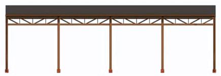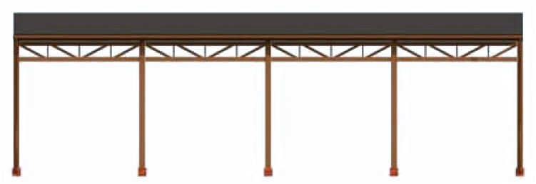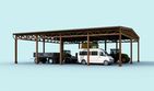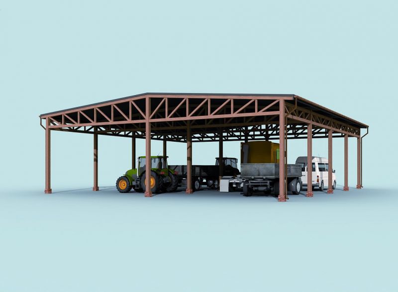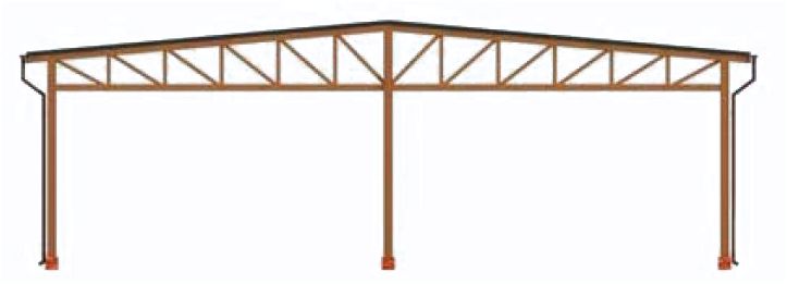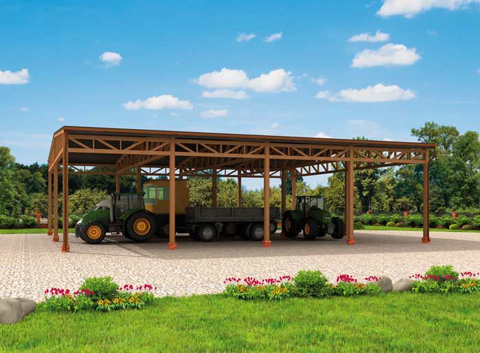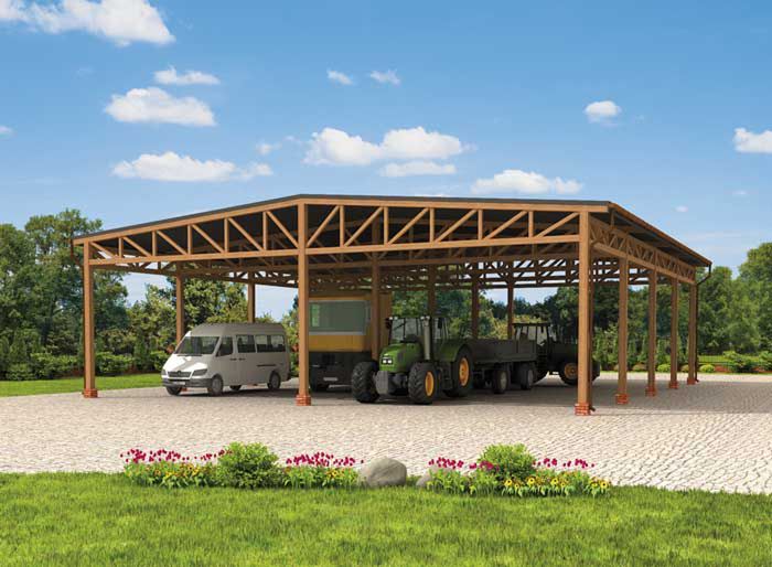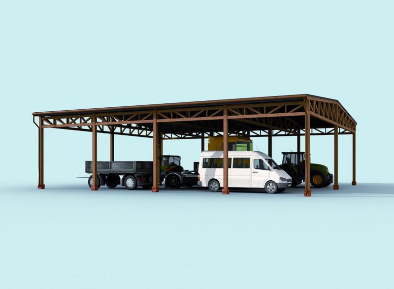 Stopy żelbetowe betonowe zbrojone konstrukcyjnie. Słupy główne zakotwione w fundamencie. Dach dwuspadowy, oparty na dachowych kratownicach , z drewna klasy co najmniej C-24 o wilgotności 22% . Pokrycie dachowe papa.