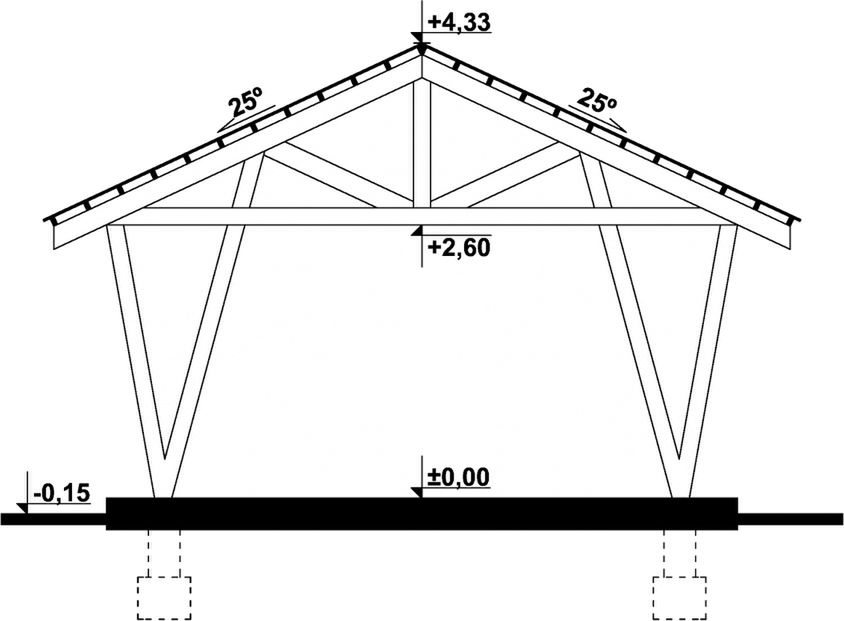 Budynek konstrukcji drewnianej. Więźba dachowa dwuspadowa, drewniana, pokryta blachodachówką.