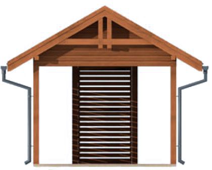 Technologia murowana :- powierzchnia użytkowa - 21,95m2 - powierzchnia zabudowy - 24,38m2 - powierzchnia całkowita - 24,38m2 - kubatura - 89,46m3 - konstrukcja nośna wiaty - słupy drewniane - wysokość budynku 4,36m - dach dwuspadowy 30° - więźba dachowa drewniana - pokrycie dachu - blacha lub blachodachówka