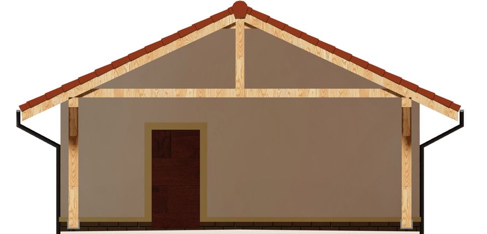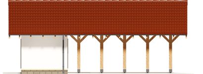 Budynek posadowiony został na fundamentach betonowych. Ściany zewnętrzne pomieszczenia gospodarczego dwuwarstwowe z bloczków silikatowych + styropian. Konstrukcja wiaty – drewniana. Pokrycie dachu - dachówka ceramiczna lub cementowa.