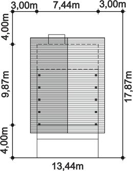 Graficzne opracowanie rzutów poglądowych widocznych na karcie projektu zostało wykonane przez Extradom.pl. Prezentowane przez Extradom.pl wizualizacje wykonane zostały przez autora projektu i należy poczytywać je jedynie za przykład i propozycję wykończenia, wizję architektoniczną autora projektu. Ostateczne wykończenie budynku może nastąpić na wiele sposobów. Szczegółowe rozwiązania zastosowane w oferowanej dokumentacji - w tym również ilość, lokalizacje i wygląd okien, drzwi, kominów - mogą w niewielkim stopniu różnić się od prezentowanej wizualizacji budynku.