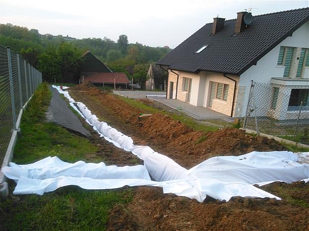 Drenaż jest to instalacja chroniąca podziemną część budynku przed niszczącym działaniem wód gruntowych i deszczowych, zgromadzonych w glebie. Zarówno wody zaskórne, deszczowe, jak i wody gruntowe mają negatywny wpływ na posadowienie budynku - powodują zmiany strukturalne w glebie, wywołują ciśnienia, szkodliwe dla konstrukcji obiektu, mogą powodować nasiąkanie fundamentów itp. Dlatego przy szczególnie niekorzystnych warunkach glebowych (grunty nieprzepuszczalne, niejednorodne) i w przypadku wysokiego poziomu wód gruntowych na działce należy rozważyć instalację opaski drenażowej wokół budynku. Głównym elementem instalacji drenażowej są rury drenarskie wykonane z PCV, których zadaniem jest pobieranie wody bezpośrednio z gruntu. W celu zapewnienia wstępnej filtracji wody, cała instalacja umieszczana jest w warstwie żwiru.
