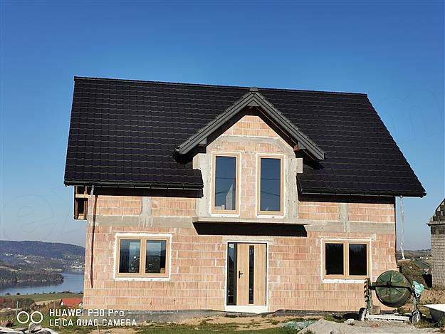 Zmiana stropu na poddaszu na żelbetowy, rezygnacja że ścianki działowej w salonie obok klatki schodowej, zwężenie przeszklen w salonie, zmniejszenie spizarki, zmiana lokalizacji drzwi wyjściowych z kotłowni oraz zmiana usytuowania komina i kotła na pellet, rezygnacja ze schodów w technologii żelbetowej na drewniana, pokrycie dachu dachówka ceramiczną